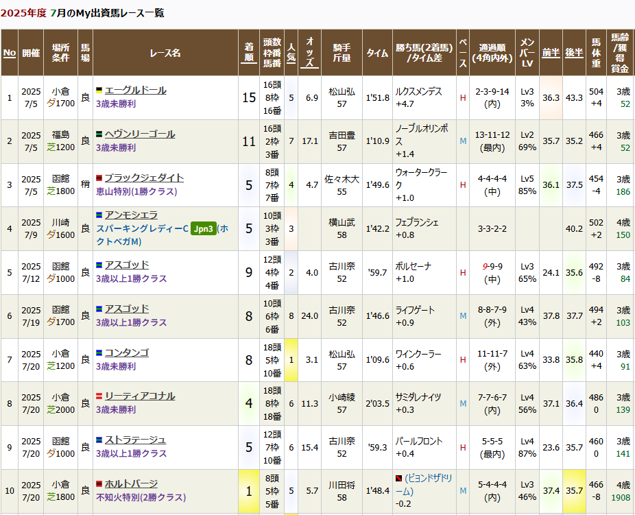 一口馬主徒然帳月報250708